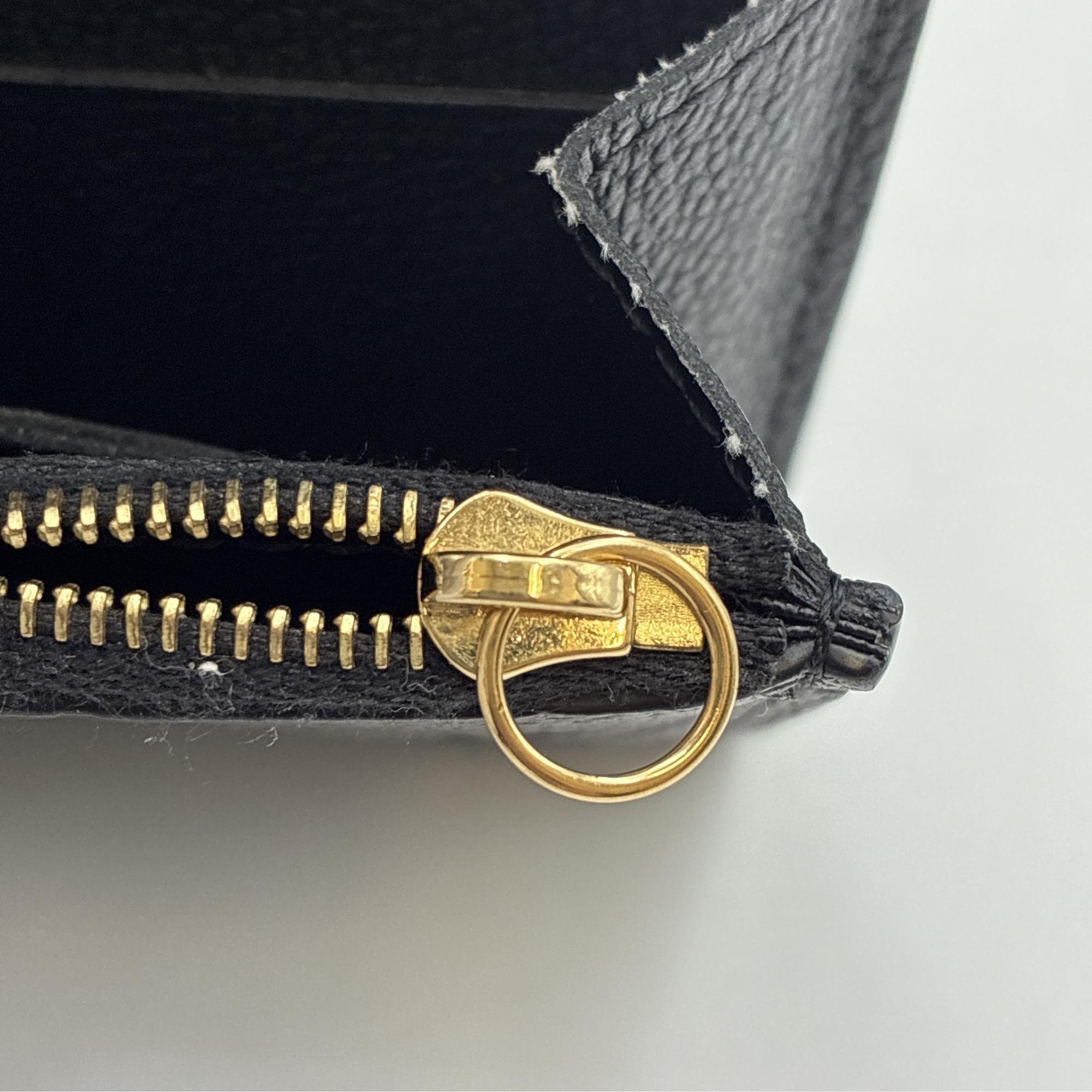 Condition: Scratches, stains, scratches on hardware/plating peeling, pull tab missing, scratches on the inside/loose stitching on edges, scratches/stains on the coin purse.